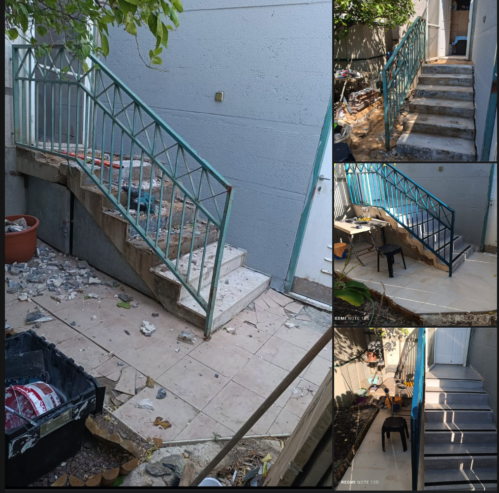 שיפוץ מקיף של המתחם החיצוני והפנימי: חידוש ושיפוץ מדרגות, חיזוק ושיקום מעקות, הסרת אריחים ישנים, ריצוף חדש, סידור תשתיות, איטום, תיקון קירות, צבע, ותאורה – הן בחוץ והן בפנים.